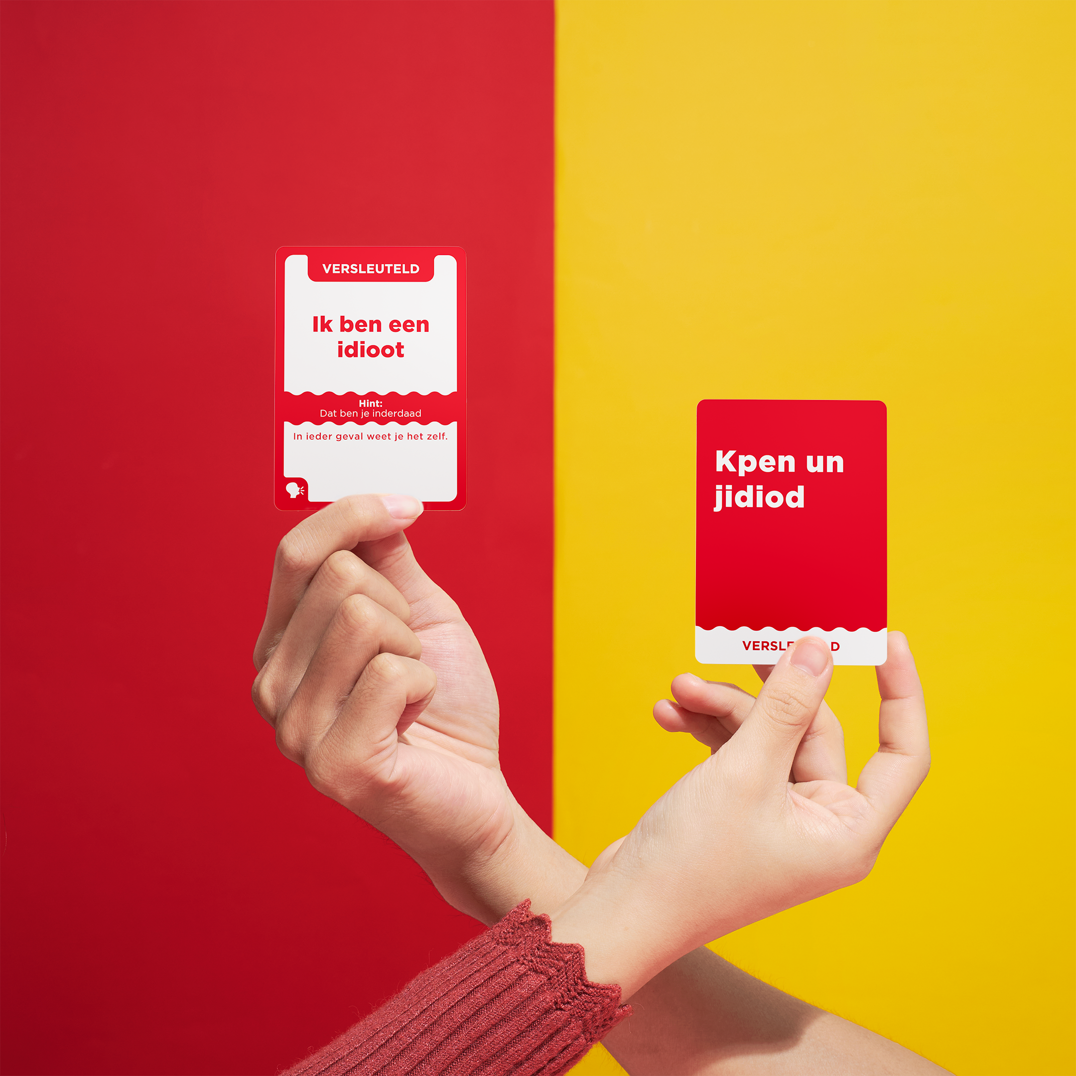 Leg alle kaarten in het midden met de Versleutelde kant naar boven. Zorg dat de juiste antwoorden voor iedereen zichtbaar zijn behalve voor degene die raadt, zodat de rest van de groep kan meekijken (en lachen) terwijl die probeert het op te lossen.